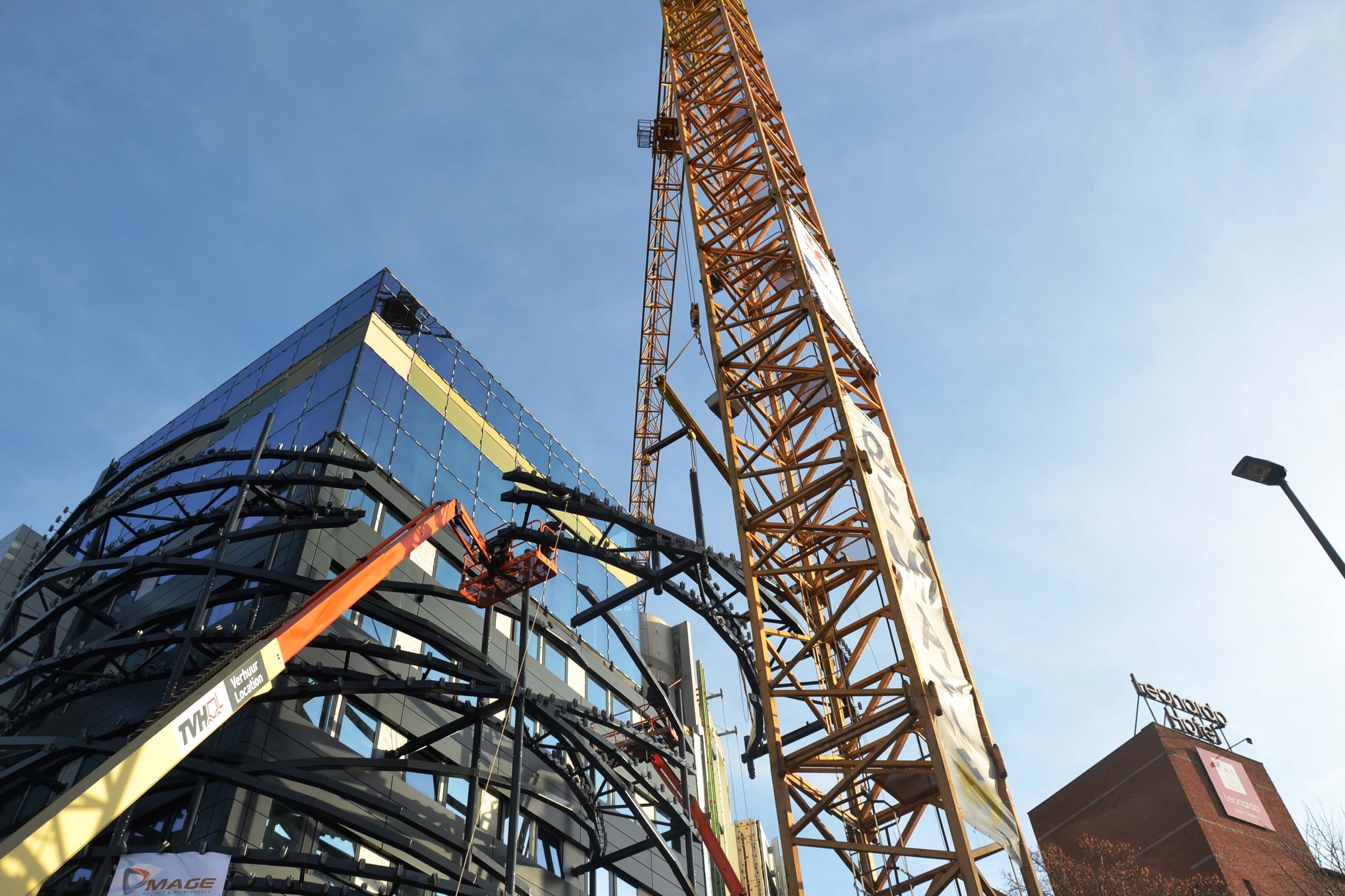 Phase la plus spectaculaire du chantier, l’installation de la rotonde, d’une hauteur de 31 mètres de haut sur 20 mètres de large, aura nécessité 840 pièces dont 312 différentes constituent la structure. Son poids atteint 43 tonnes, dont 750 kg de peinture. Au total, elle comporte 24 modules et passerelles, chacun entre 1,7 et 3,5 tonnes.