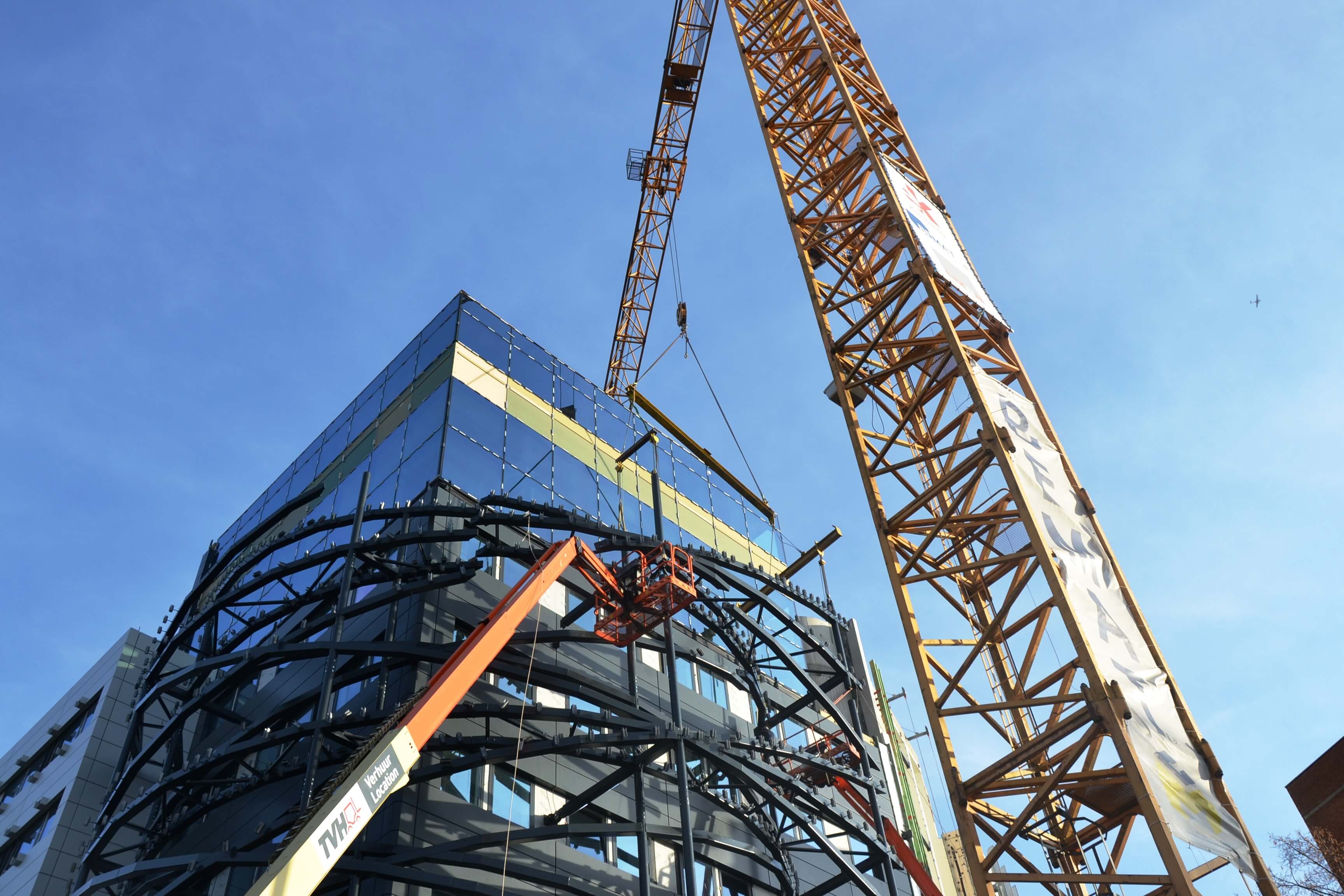 Depuis 3 semaines, les équipes se succèdent pour s’atteler au montage de la rotonde de notre nouveau bâtiment SOLEO.