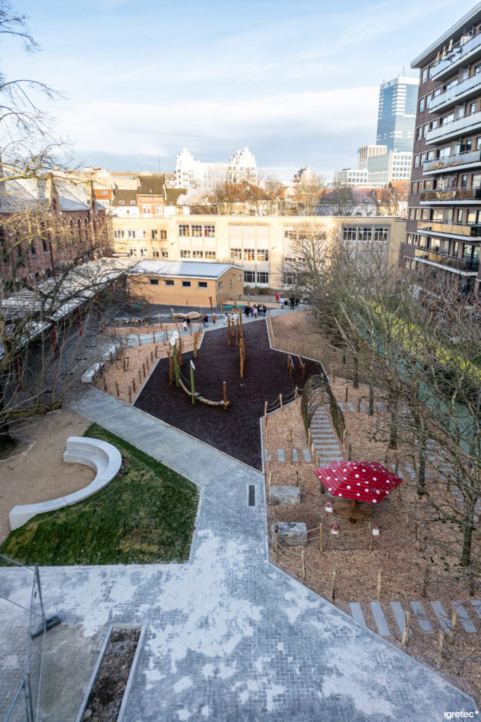 Ce projet incarne la volonté de repenser les espaces scolaires en faveur du bien-être, de l’apprentissage et de la durabilité. Il s’inscrit dans une démarche globale de transition écologique et d’amélioration du cadre de vie urbain pour faire de l’école Ulenspiegel un modèle d’aménagement scolaire innovant, au service des générations futures.