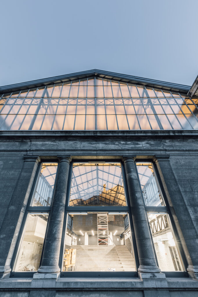 L’intervention architecturale met en valeur l’héritage industriel du bâtiment. L’utilisation de matériaux bruts et résistants — béton poli, maçonnerie apparente, structures métalliques — permet de préserver l’expression d’origine tout en créant un environnement contemporain. Les performances énergétiques ont été nettement améliorées grâce à une isolation renforcée et à des menuiseries performantes, en cohérence avec les objectifs environnementaux du BPS22, le musée voisin.